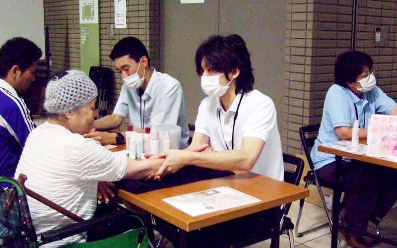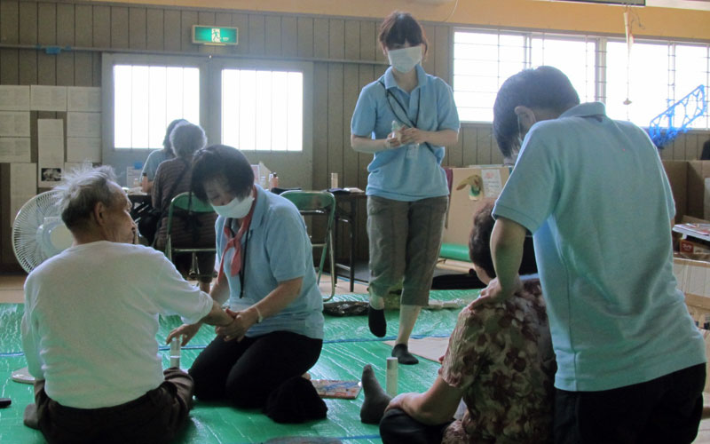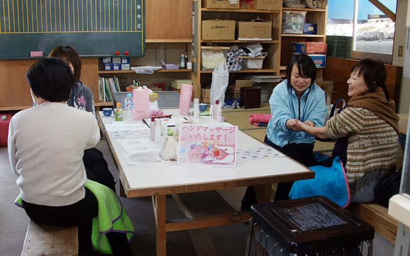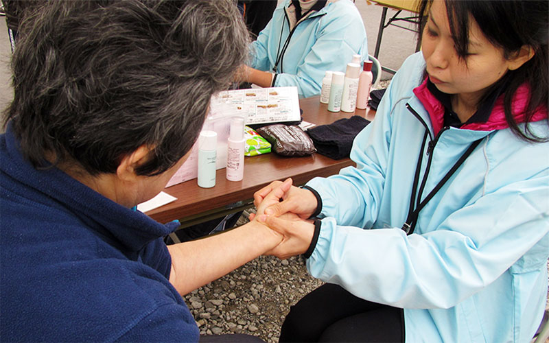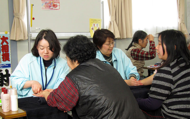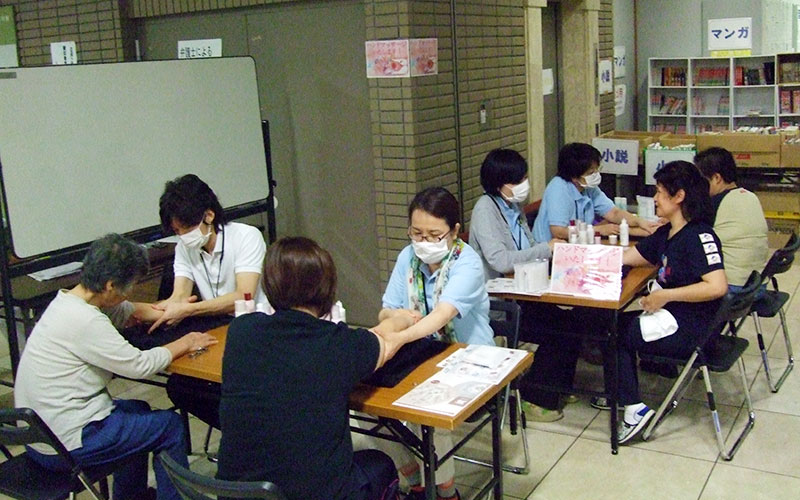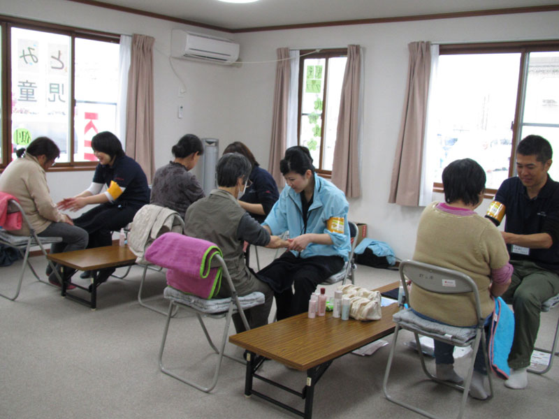 - 宮城県仙台市宮城野区 福室市民センター内にて、避難所で生活されている方へハンドマッサージを実施
