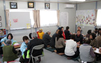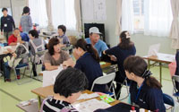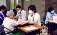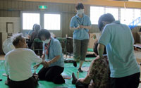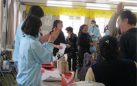 - 2班に分かれて福島市内の避難所でハンドマッサージのボランティアを行う。