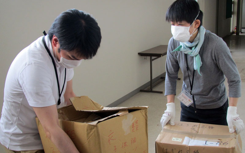 - 岩手県盛岡市内の廃校に保管されている支援物資の仕分けと支援物資置き場の整理。