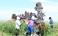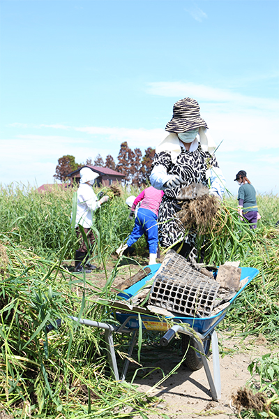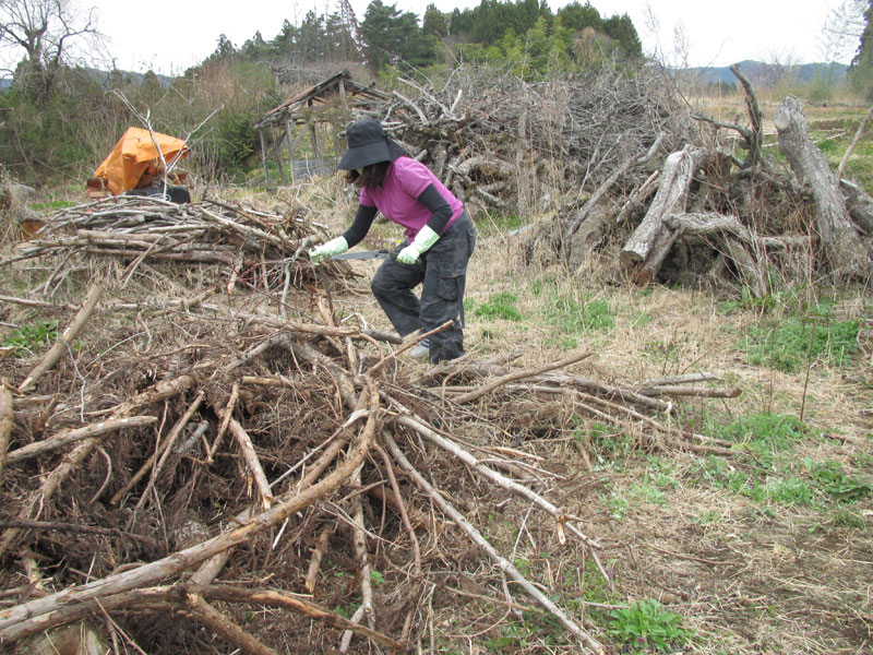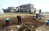 畑に生えた雑草と津波により畑に運ばれてきた石などの除去。 - 2班:仙台市若林区