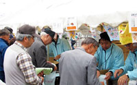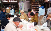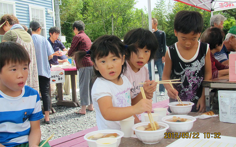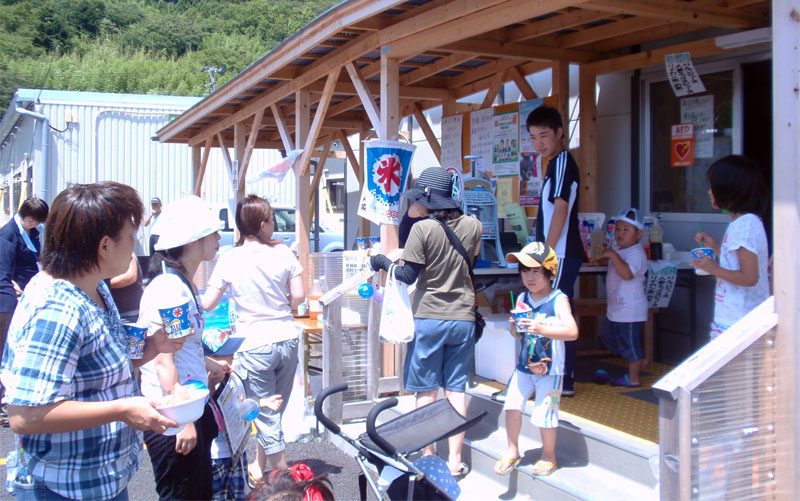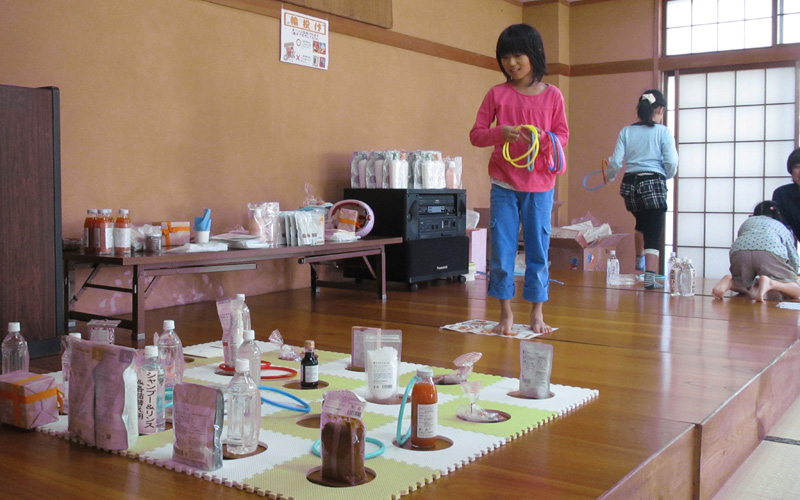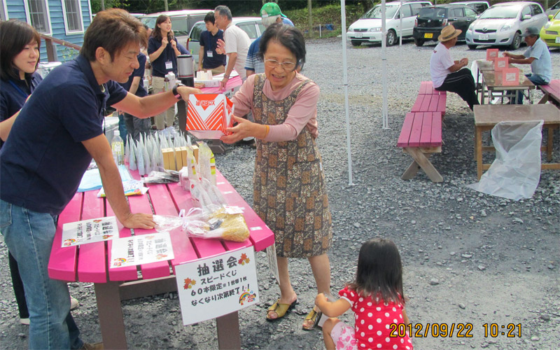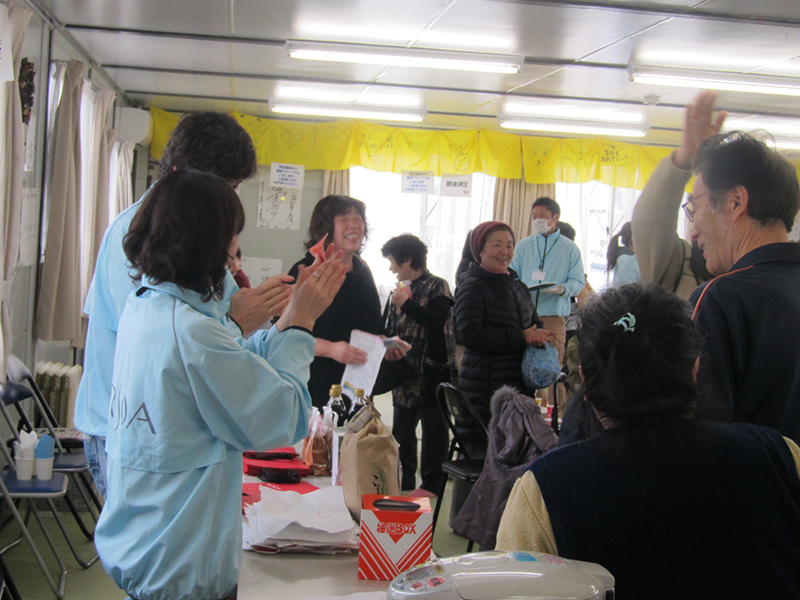 - 岩手県陸前高田市 米崎中学校内仮設住宅にお住まいの方々へおでん、みたらし団子、ドリンクのご提供、また、ビオクラ食養本社の食材が当たる抽選会を行いました。