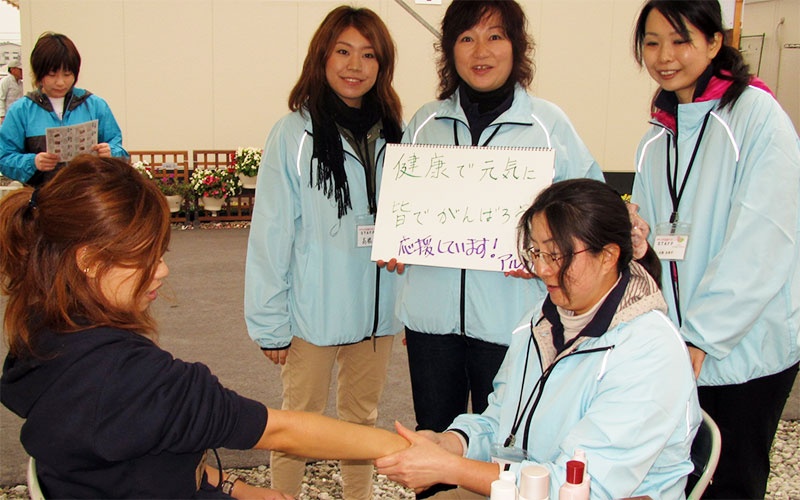 - 福島県福島市内避難所(パルセいいざか)でハンドマッサージのボランティアを行う。