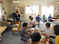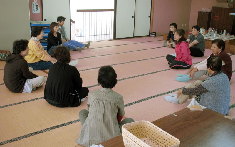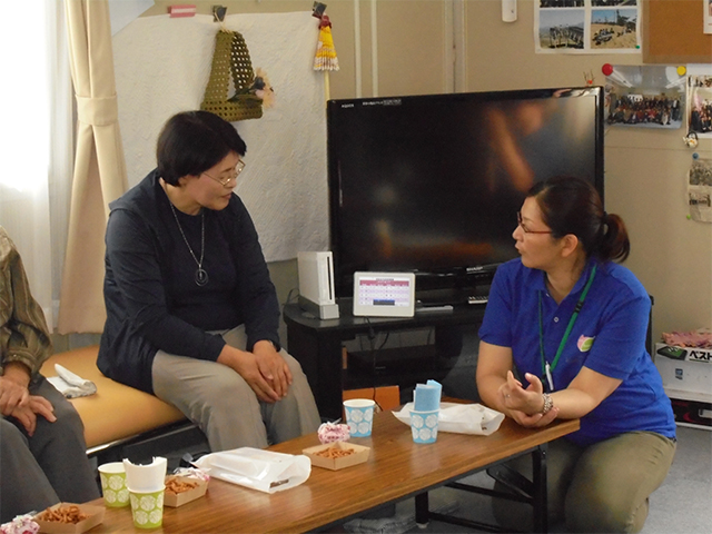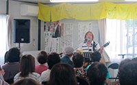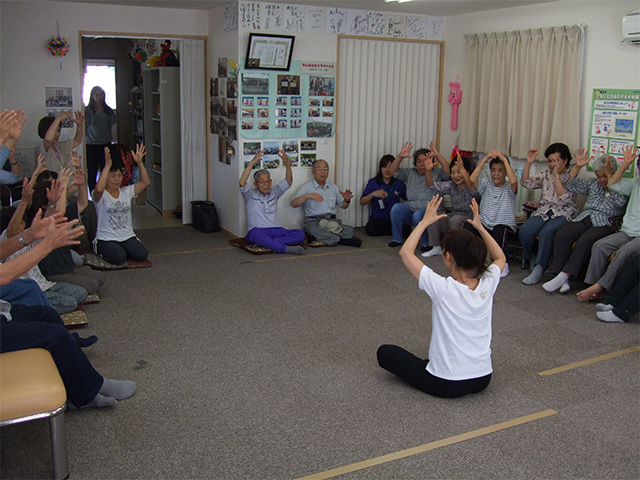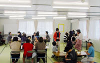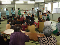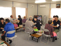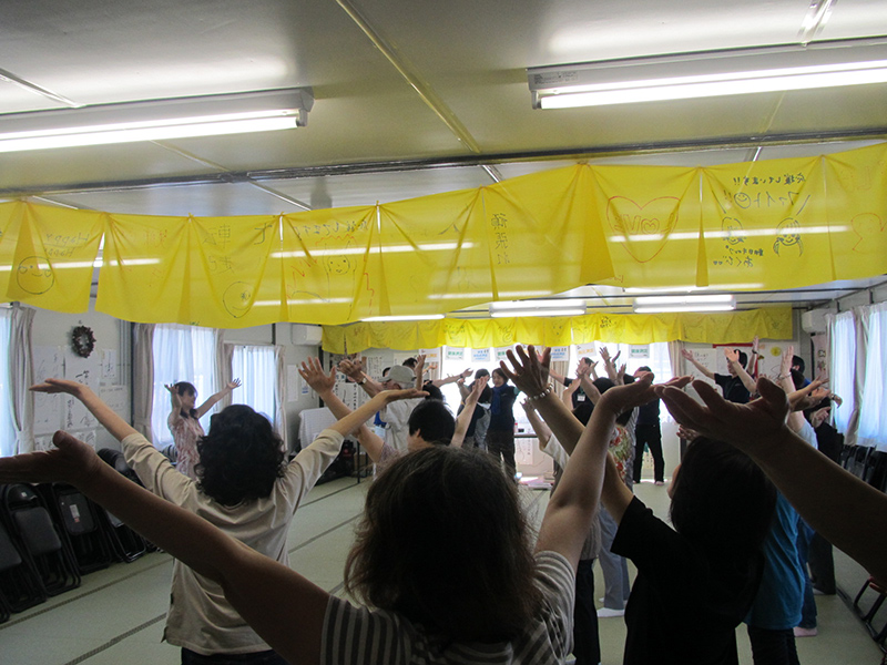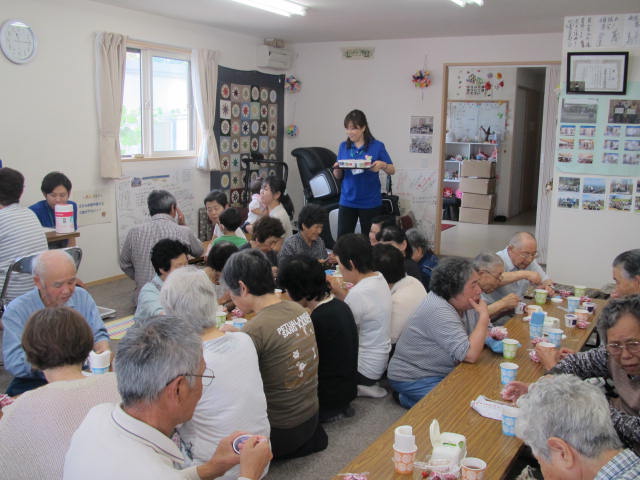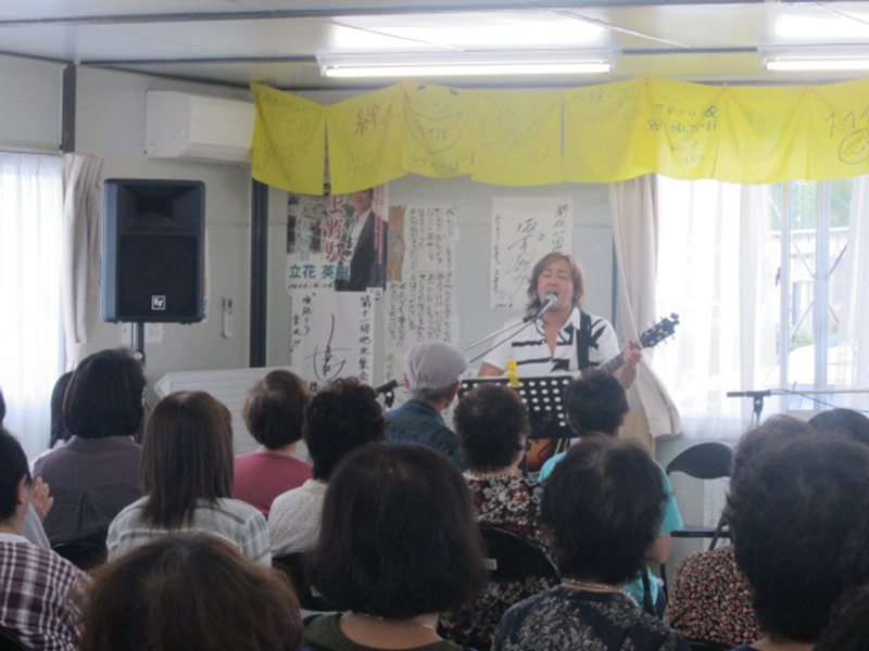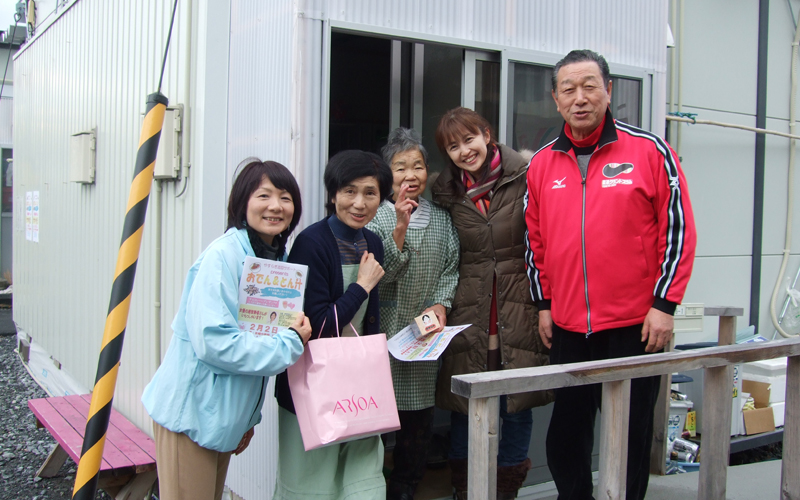 - 福島県田村郡三春町 貝山仮設住宅にお住まいの方々へ、女優 越智静香さんによるチベット体操、アルソアによる健康測定・カフェ、音楽家 原田真二さんによるミニライブを行いました。最初から最後までたくさんの方の笑顔がみられました。ほんのひと時でも、やすらげる時間を過ごしていただけたように感じ、また皆さまに笑顔を届けに伺いたいと思いました。