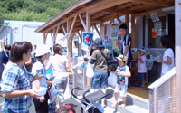 暑かったこともありカキ氷は年齢問わず非常に人気がありました。また、ヨーヨー釣り、スイカ割りもカキ氷同様多くの方々にお越したいだき笑顔あふれる楽しいひとときとなりました。 そんな中、お昼休みに当時のこんなお話をお聴きしました。「何もなく大変な時に自衛隊の方が持ってきてくださったおにぎりがすごく美味しかった…。」とおっしゃったのが、とても心に響きました。
