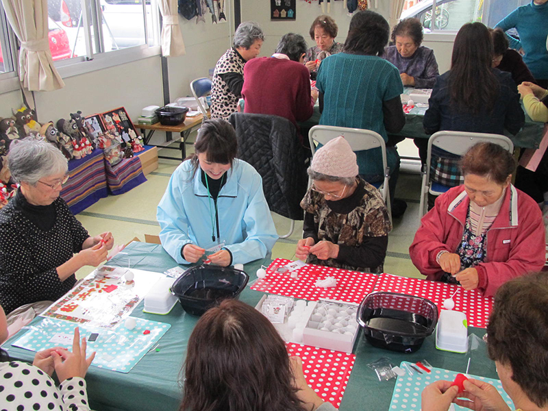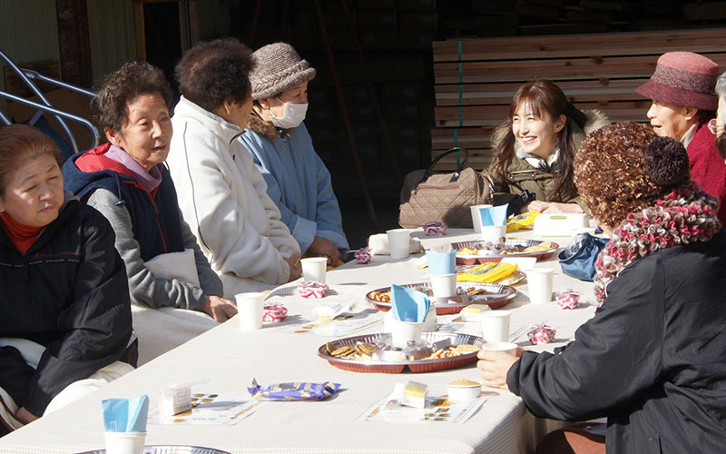 - 岩手県陸前高田市 栃ヶ沢仮設住宅隣の共和建設さんに場所の提供などご協力いただき仮設住宅にお住まいの方々へ 甘酒、ビオクラのクッキー、などを提供するやすらぎカフェを開設。また、ハンドマッサージ、ビオクラ商品(豆乳などの大豆商品)バレンタインのチョコを配布。