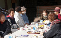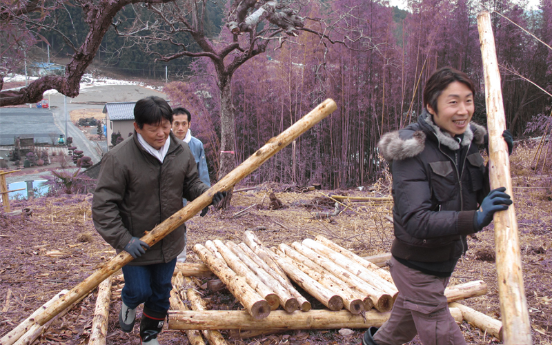 - 岩手県陸前高田市立米崎町にあるNPO法人再生の里 ヤルキタウンで、人が集まれる花画廊づくりのお手伝いと、翌日ヤルキタウンが「磯雑煮」を出展する、三陸沿岸部一帯が復興に向けて一丸となり、東北の現状および情報を全国的に発信することを目的としたプロジェクト『復興グルメF-1大会』の準備のお手伝を行いました。