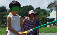 午後はほとんどの方がチベット体操に参加されましたが、お子さま連れのご家族や、参加されない方には、信玄桃を召し上がっていただいたり、輪投げも楽しんでいただきました。